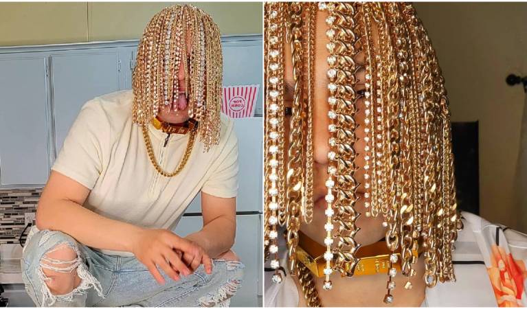 A rapper is trending after surgically implanting gold chains on his skull. The 23-year-old musician claimed he is the first rapper. In human history to rock an assortment of gold chains as hair hanging from hooks he had surgically implanted into his scalp.